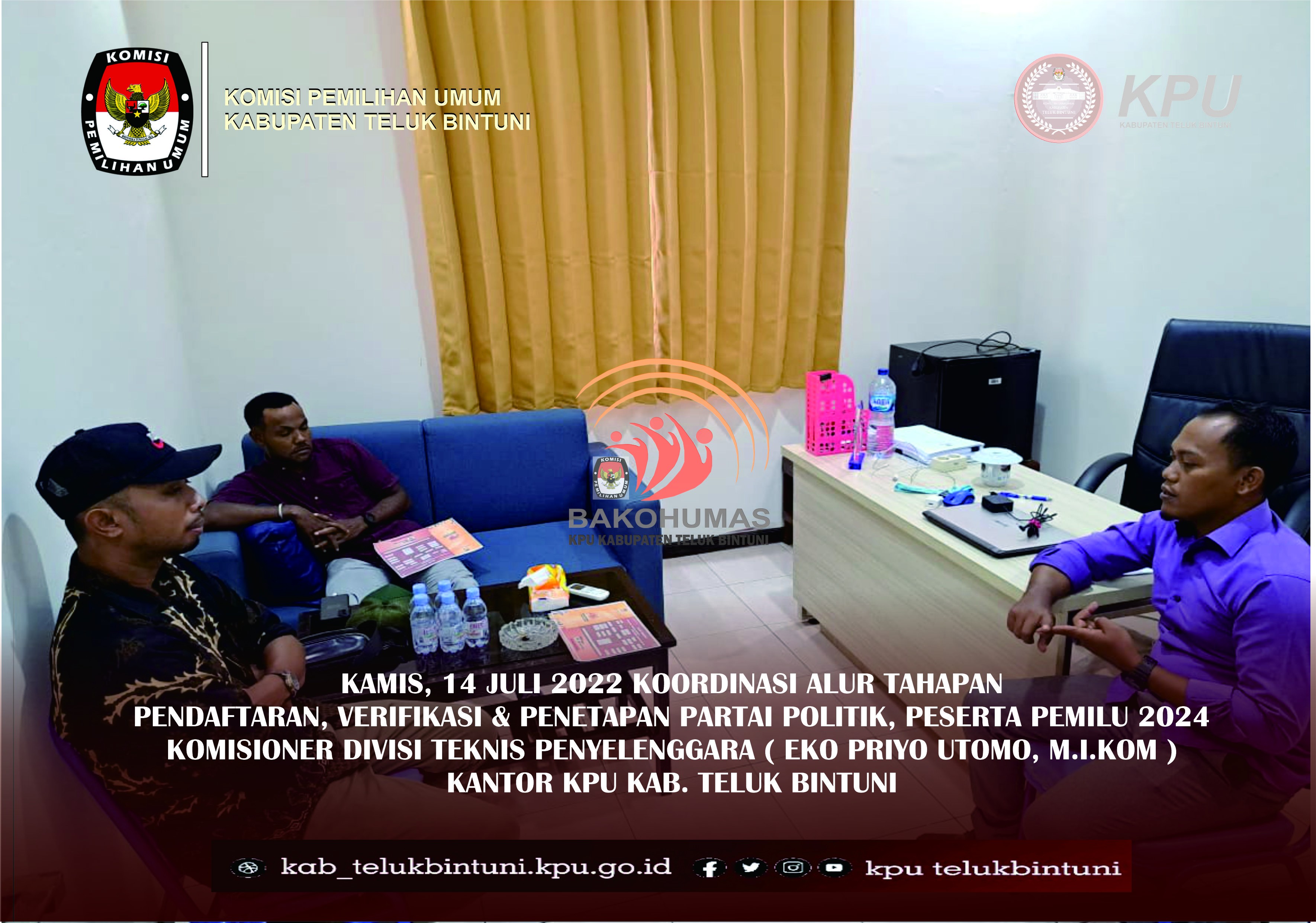 Dalam pertemuan tersebut, Eko selaku penanggungjawab Divisi Teknis dan Penyelenggara mengatakan bahwa terrkait tahapan pendaftaran dan verifikasi partai politik, KPU Teluk Bintuni masih menunggu diterbitkanya regulasi dan produk hukum berupaka PKPU maupun petunjuk teknis dalam pelaksanaan tahapan verifikasi partai politik.
