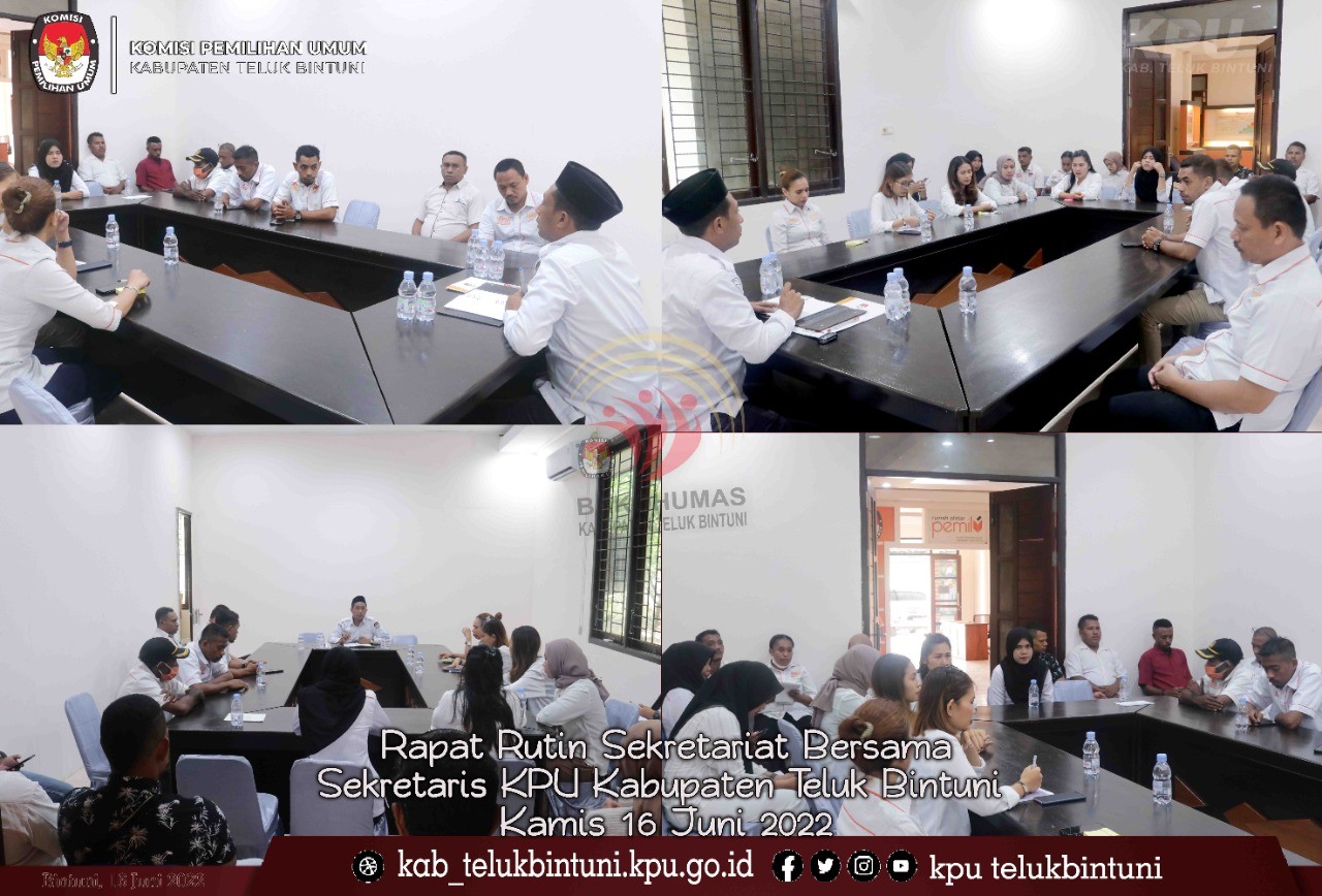#TemanPemilih, KPU Kabupaten Teluk Bintuni melaksanakan Rapat Evaluasi Kinerja sekretariat yang dipimpin oleh Sekretaris KPU Kab. Teluk Bintuni (Syahid Bin Muzaat) dalam rapat tersebut beliau membahas terkait Kedisiplinan, Kreativitas staf dalam menjalankan tugas yang diberikan dan beliau juga menyampaikan akan dilakukan rolling job sehingga para staf bisa bekerja secara efektif dan efisien baik secara permanen maupun sementara. Kamis, 16/6/22.