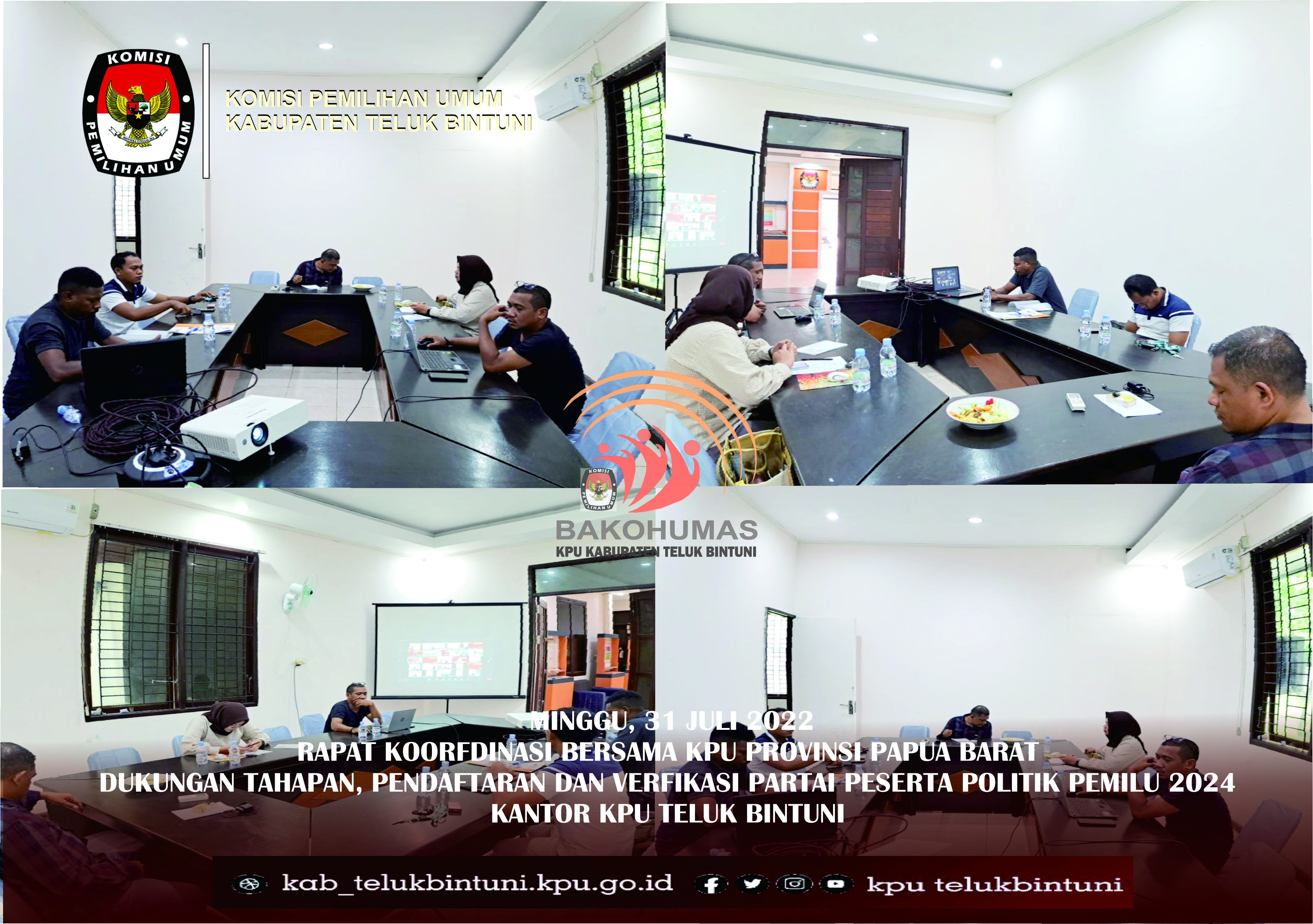 RAPAT KOORDINASI BERSAMA KPU PROVISI PAPUA BARAT DUKUNGAN TAHAPAN, PENDAFTARAN DAN VERFIKASI PESERTA PARTAI POLITIK PEMILU 2024