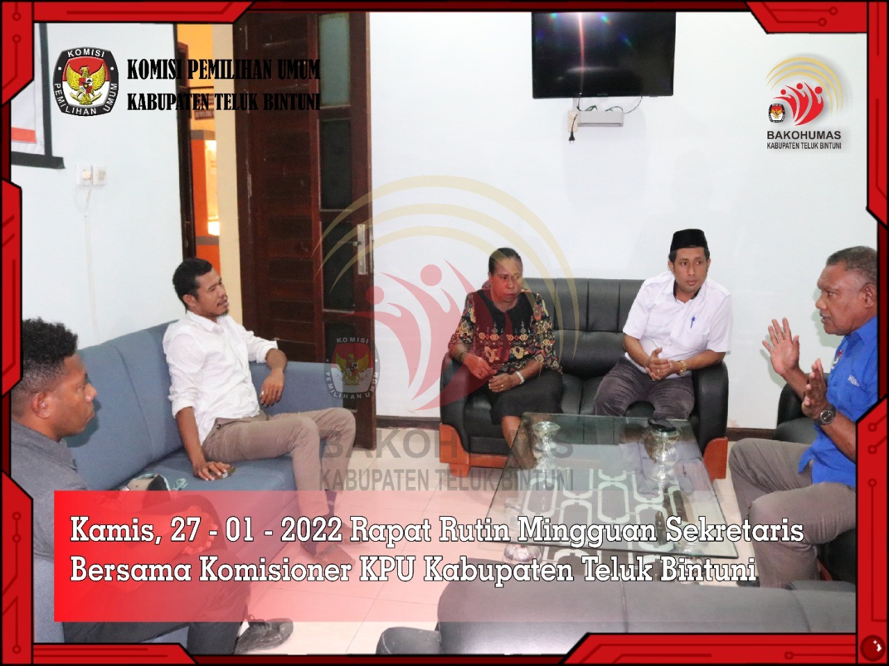 RAPAT RUTIN MINGGUAN SEKRETARIS BERSAMA KOMISIONER KPU TELUK BINTUNI
